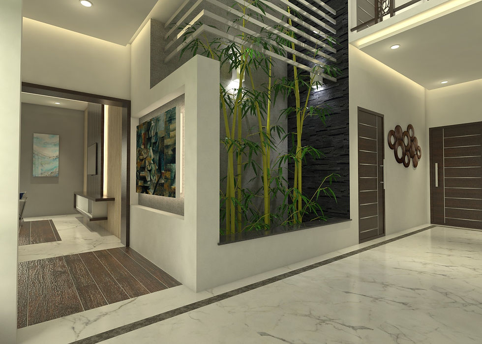 Contemporary Residence in KurancheryNeenu T SDec 10, 20211 min readExterior View rendered in LumionResidence at a glanceWho lives here : A family of 4Location : Kuranchery, ThrissurSize: 2719 sq. Ft, 5 bedroomsYear of Completion: 2019Design Firm: MRA ArchitectsEntrance Lobby, welcome painting, Rendered using V-ray for SketchupGuest LivingView of courtyard in the foyerDining room